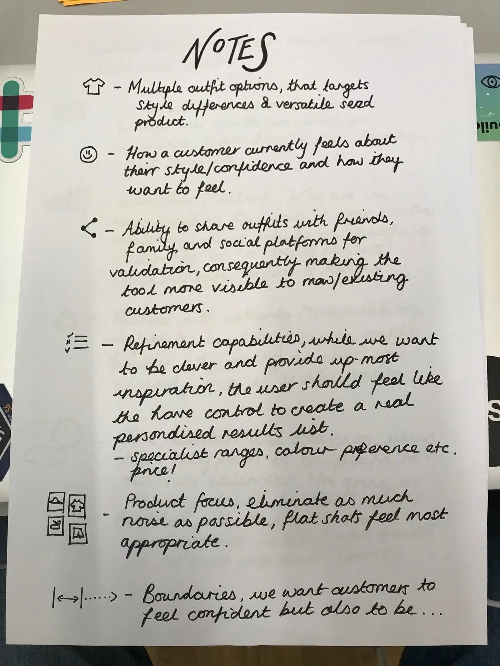 Our hypothesis was: By displaying complementary products, we would encourage customers to purchase items that worked together as an outfit. This would increase average basket value (ABV) and revenue per visitor (RPV). This feature would be referred to as ‘Outfit Builder’