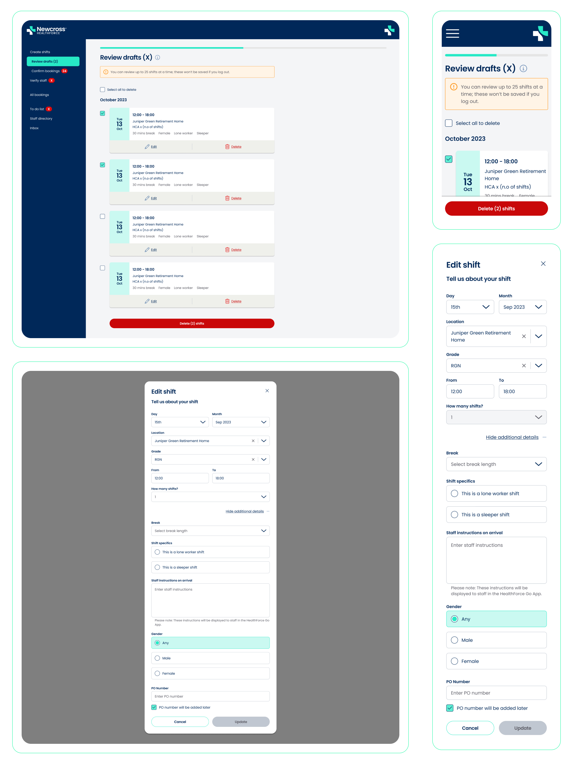 ‘Shift Invitations’ was a term coined for this project, as we knew branch managers received requests from clients wanting to book a specific healthcare worker for a shift. This presented a pain point for the business as it removed our opportunity to recommend all suitable healthcare workers on our roster.