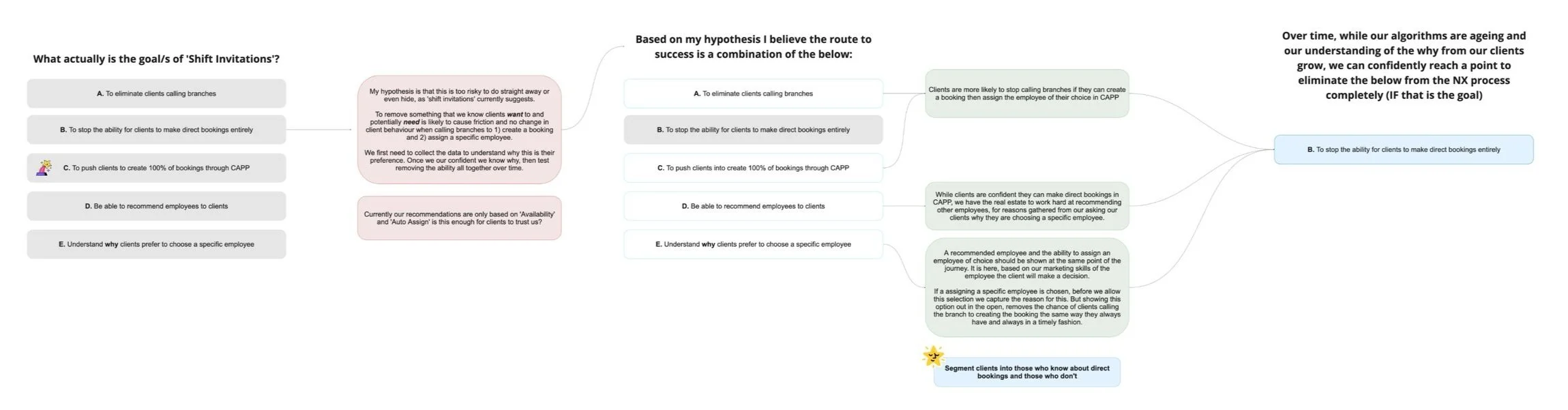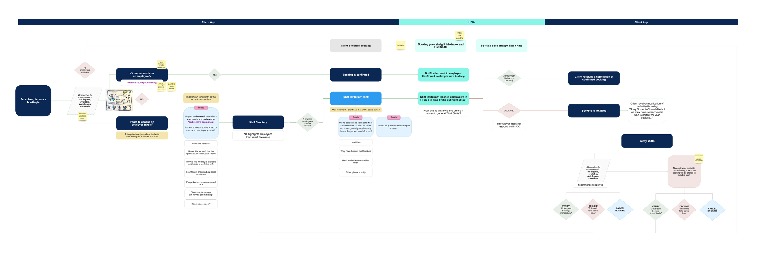 As expressed in my hypothesis, the first step was to introduce ‘Shift Invitations’ digitally. This would completely remove the need for clients to call a branch. Then they’d have the option to either choose their employee or accept our recommendation - solely through our app.